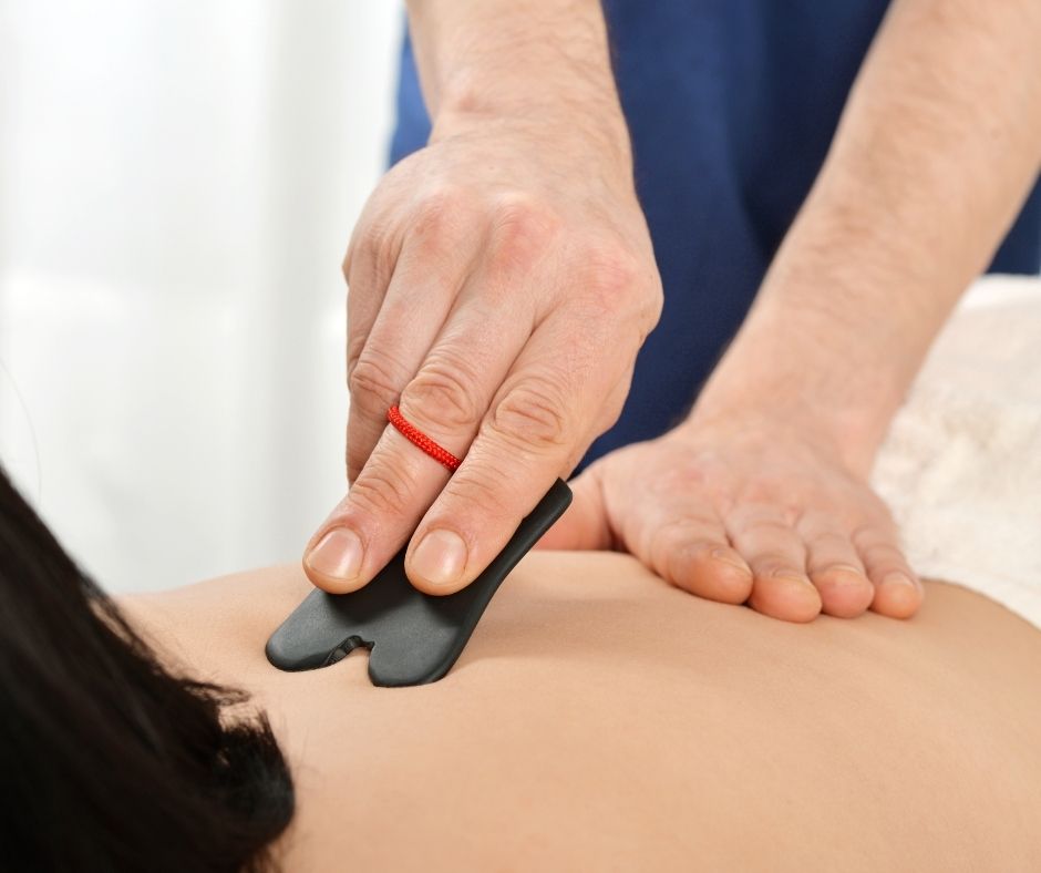 Gua Sha is a traditional manual therapy used to gently stimulate the skin and fascia through rhythmic strokes along specific areas of the body. Often described as “scraping” in English, this technique involves using a smooth-edged tool to apply pressure and movement along the surface of the skin.